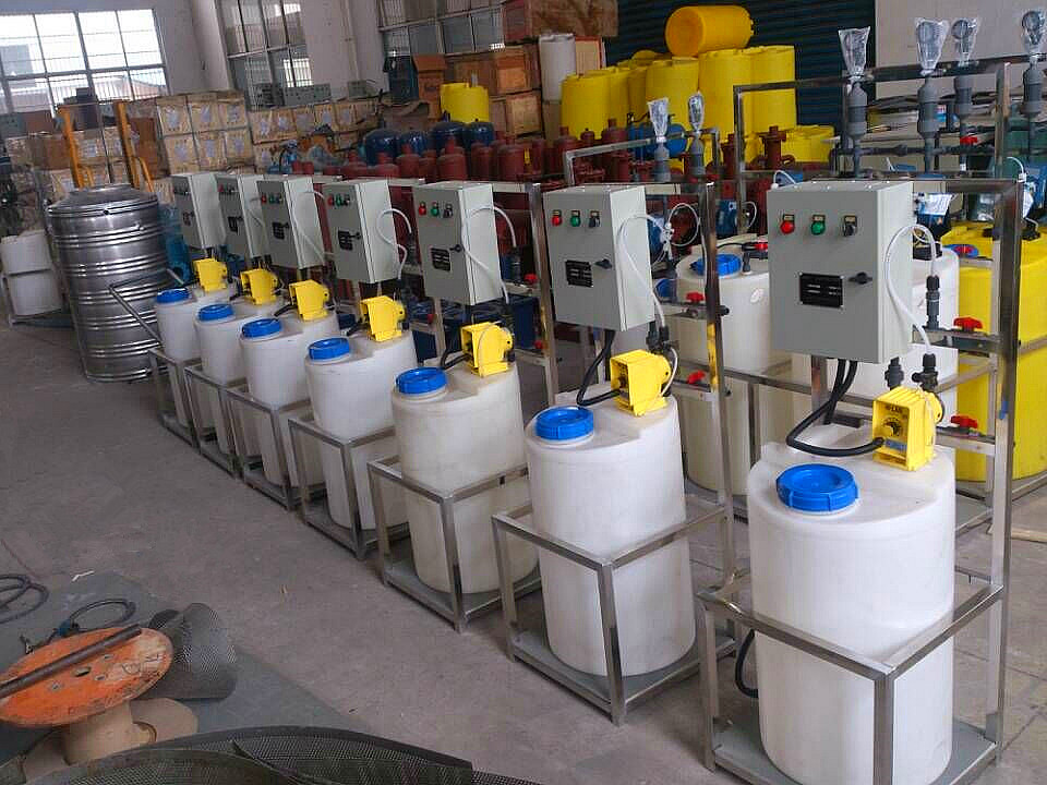 3、水處理加藥裝置。在水處理過(guò)程中向自來(lái)水、廢水、污水中加藥。主要用于有關(guān)給排水處理、環(huán)保等工藝流程。如自來(lái)水廠(chǎng)、賓館、飯店、游泳池、污水處理廠(chǎng)等。