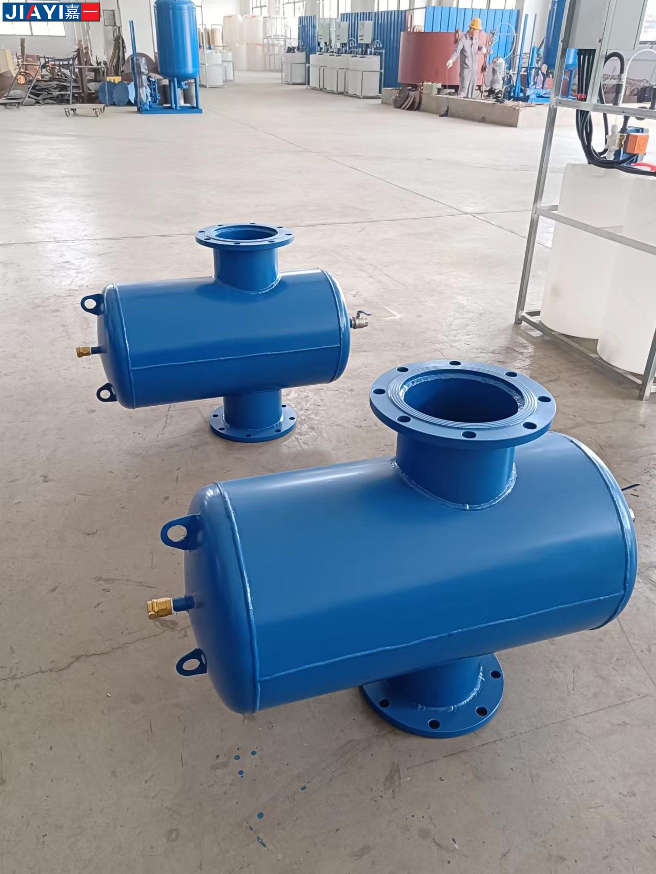 利用氣水分離、沉降、過濾等機理。當冷卻水、熱水、冷凍水系統中水進入螺旋脫氣過濾器時,體積擴大,流速急劇降低,水中氣泡分離上升至聚氣區,小氣泡吸附在分離板上,當形成大氣泡上升至聚氣區后通過自動排氣閥排除。