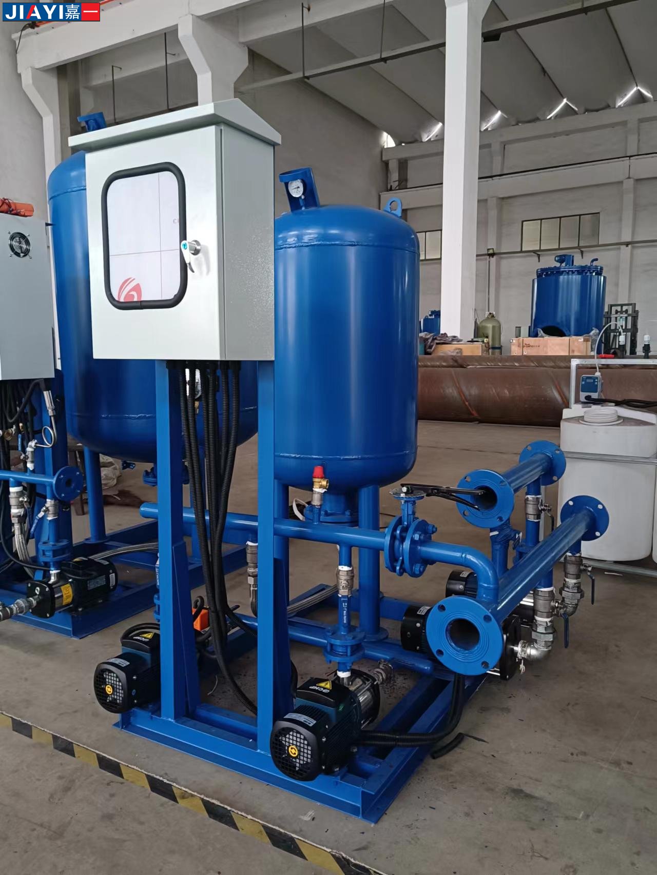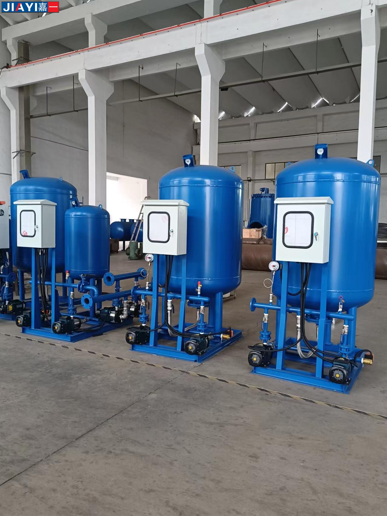 定壓補水機組由囊式壓力罐、水泵、控制箱、底架、壓力感應裝置、管道閥門等組合而成,是一種兼有升壓、調節、儲水、供水等多種功能的常用供水設備。定壓補水機組利用氣壓罐的可調節能力,可自動調節用戶水量的變化,當用水量減少或不用水時,可較長時間不啟動水泵,達到節能目的。與水塔、高位水箱相比可節省投資約40%-60%。該設備結構緊湊,與其他傳統的供水裝置相比減少了占地面積,節省了土地資源。本設備全自動運行,無需專人管理,工作可靠。