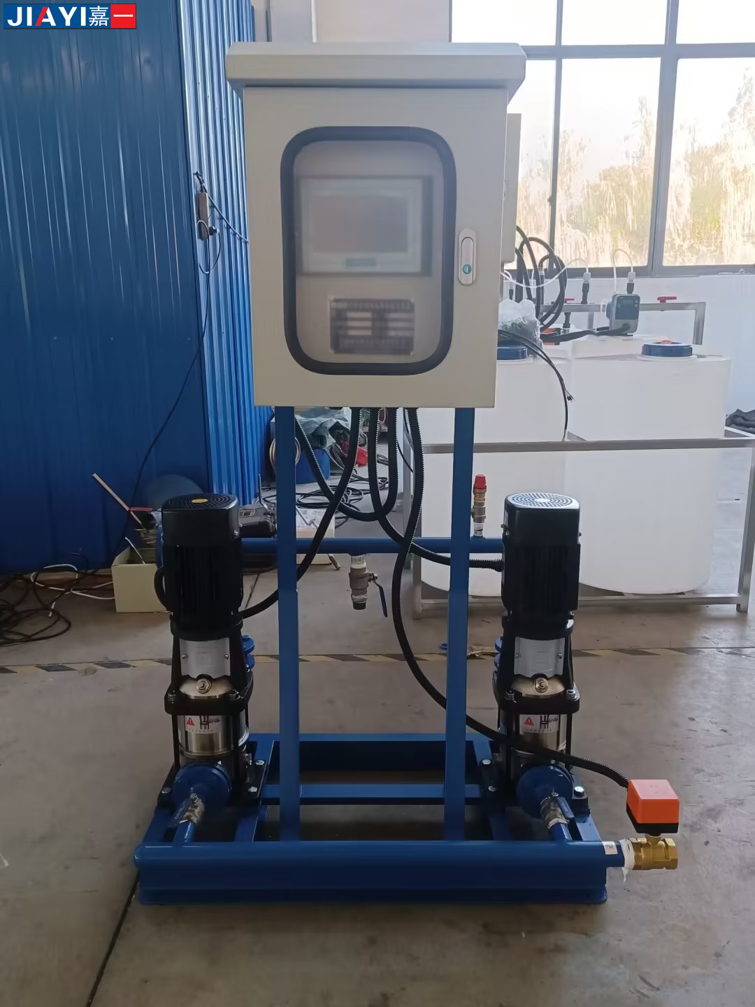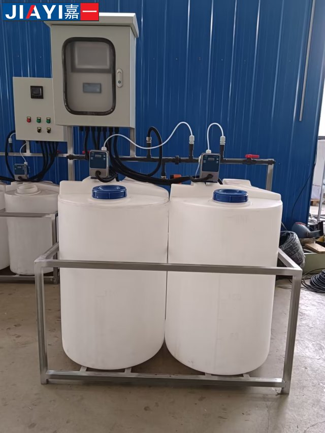 全自動(dòng)加藥裝置采用時(shí)間程序控制,此控制方式無需儀表的支持,首先根據(jù)系統(tǒng)的運(yùn)轉(zhuǎn)需要設(shè)定自動(dòng)加藥的周期、加藥量、加藥時(shí)間和加藥頻率。在以后的系統(tǒng)運(yùn)轉(zhuǎn)過程中,到加藥周期,計(jì)量泵自動(dòng)打開加藥,加到規(guī)定的時(shí)間計(jì)量泵關(guān)閉;到排污周期,計(jì)量泵停止加藥,排到規(guī)定的時(shí)間后,計(jì)量泵繼續(xù)開啟,補(bǔ)充排污損失掉的藥劑,把系統(tǒng)的含藥量維持在正常的水平、加到規(guī)定的時(shí)間計(jì)量泵關(guān)閉。