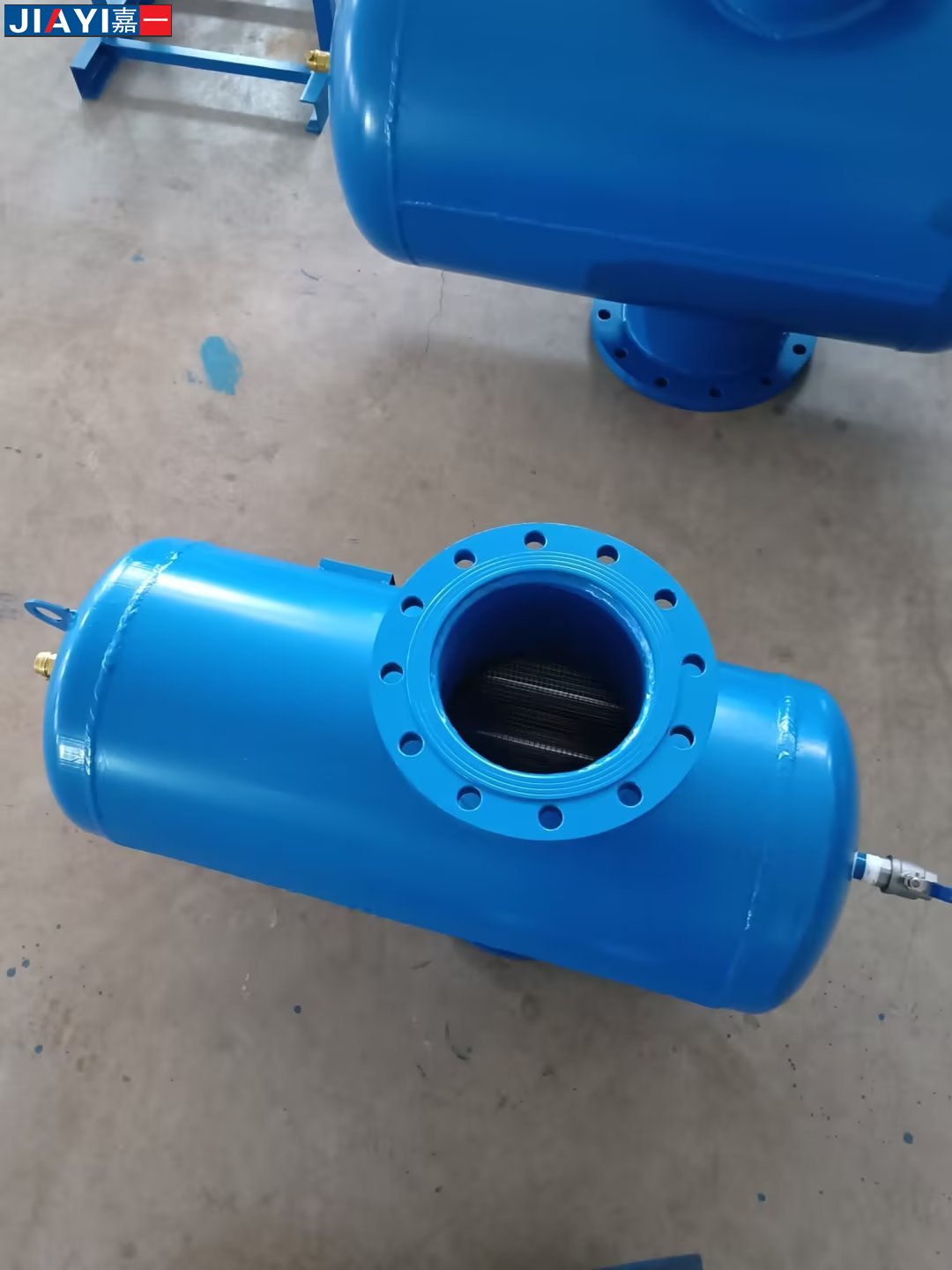 利用氣水分離、沉降、過濾等機理。當冷卻水、熱水、冷凍水系統中水進入螺旋脫氣過濾器時,體積擴大,流速急劇降低,水中氣泡分離上升至聚氣區,小氣泡吸附在分離板上,當形成大氣泡上升至聚氣區后通過自動排氣閥排除。